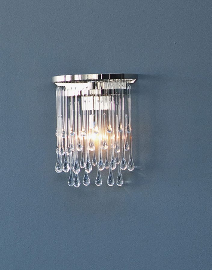 wall light in nickel or patinated bronze finish with solid clear glass drops