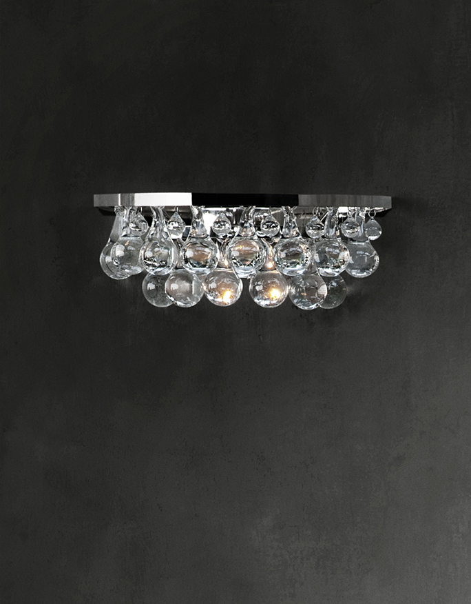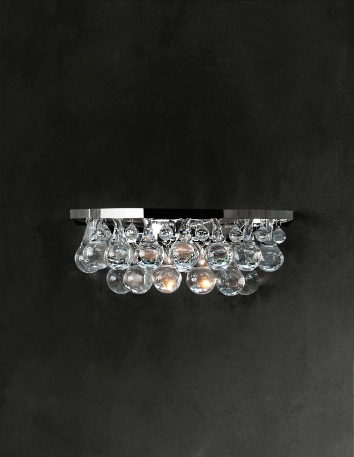 wall light in patinated bronze or nickel finish, with solid clear glass drops
