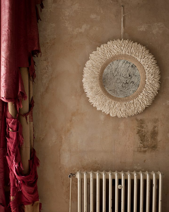 strips of coconut shell with mercury glass mirror